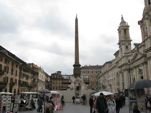 可惜我們看到的是維護中的四河噴泉,因此分別代表Danube(多瑙河:歐洲)、Rio de la Plata(布拉特河:美洲)、Nile(尼羅河:非洲)和Ganges(恆河:亞洲)的四尊雕像都看不到了。這四條河流也代表著當時人們對世界的認知僅止於此。